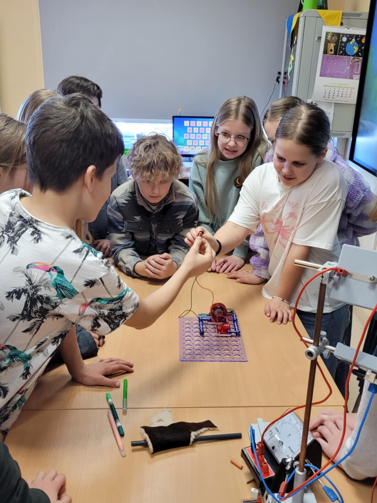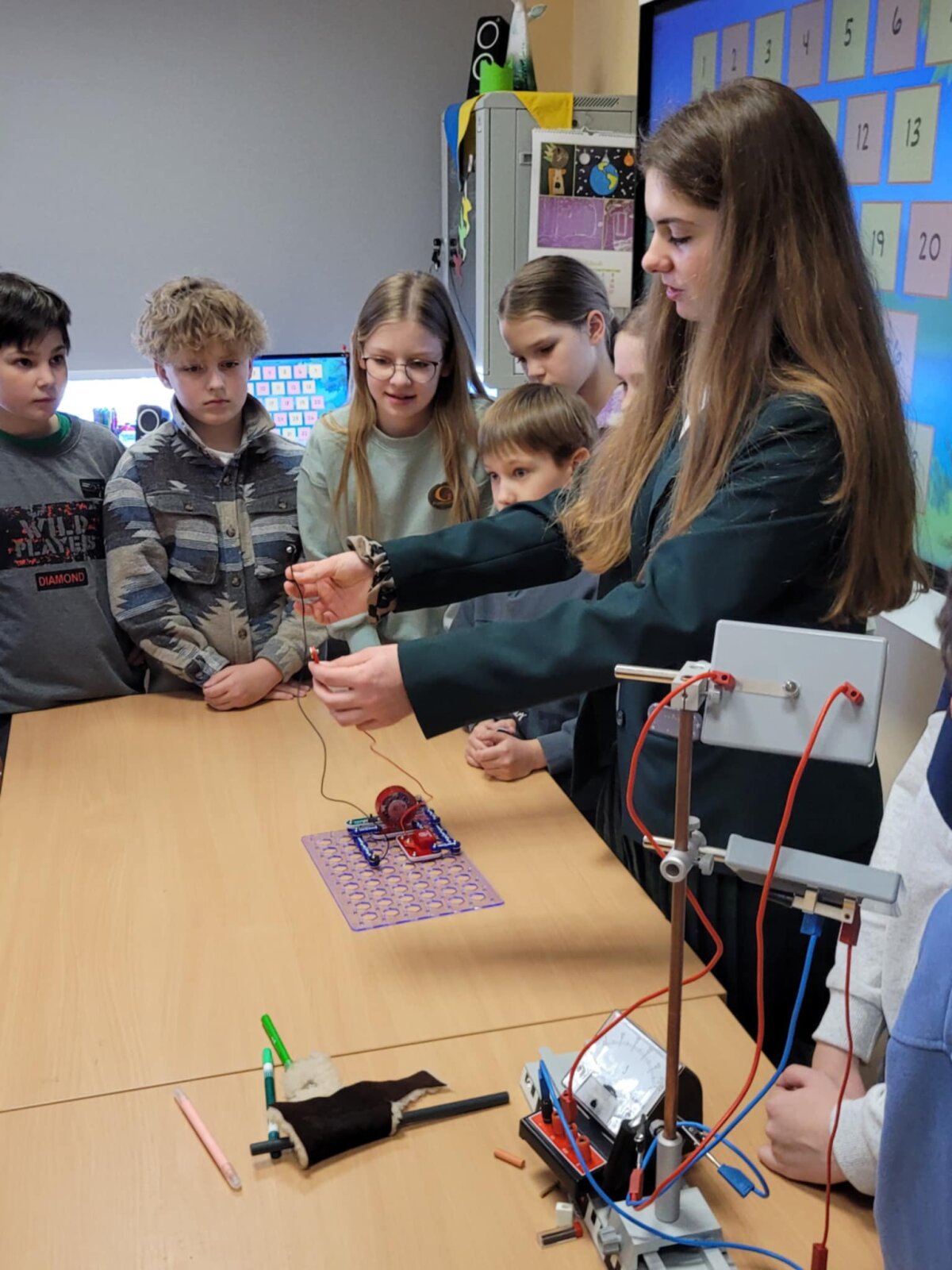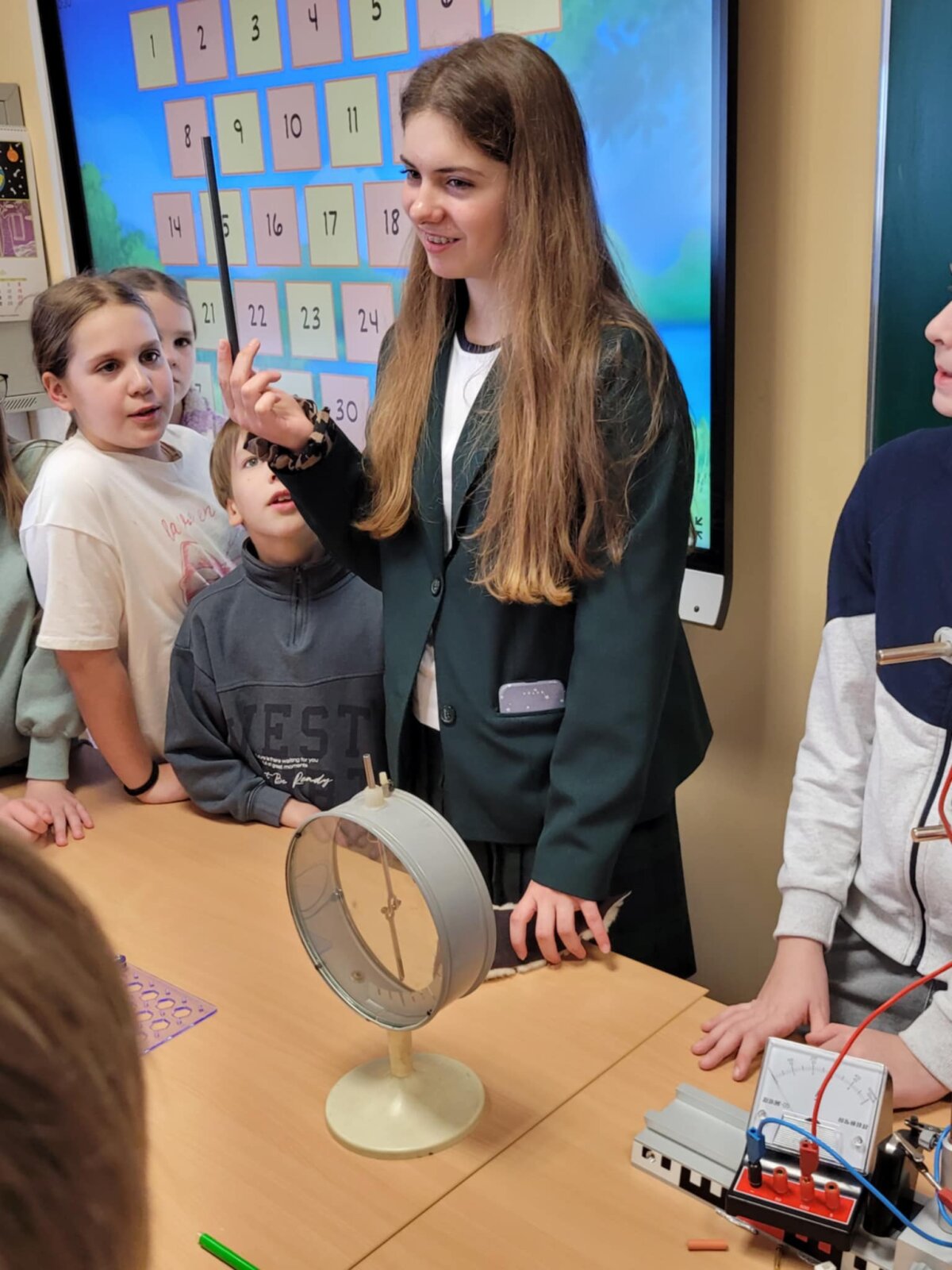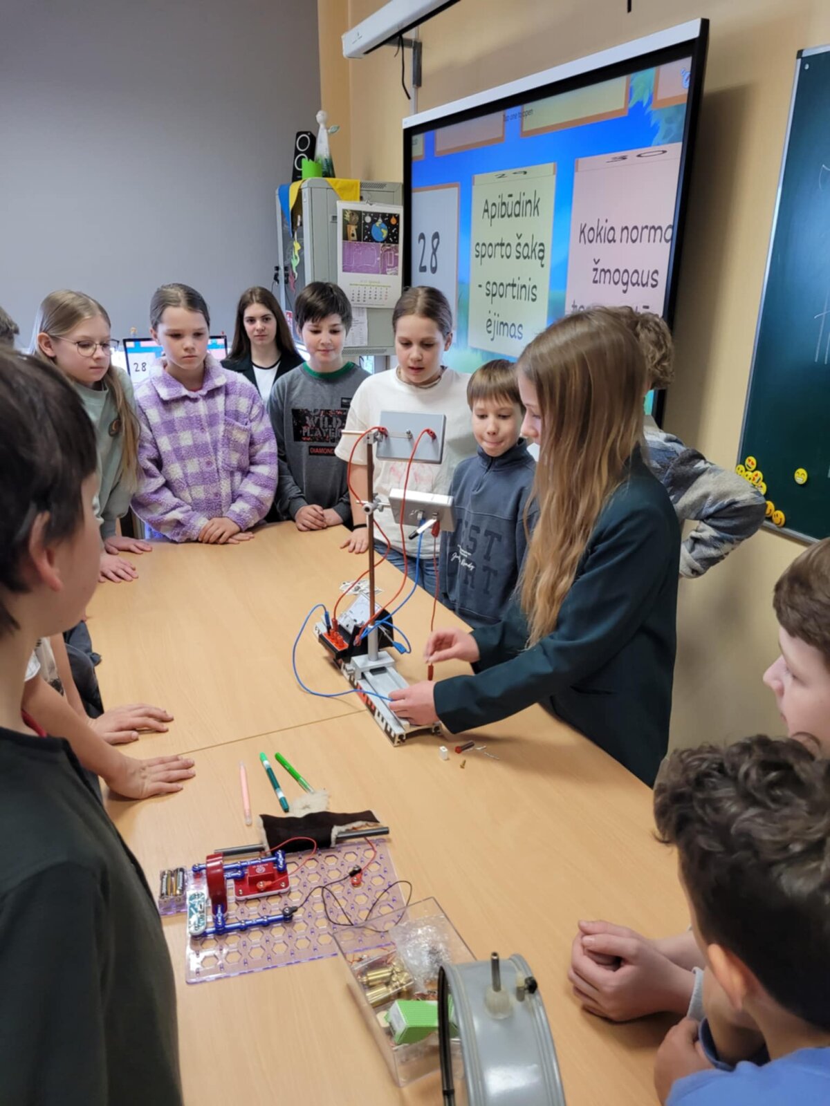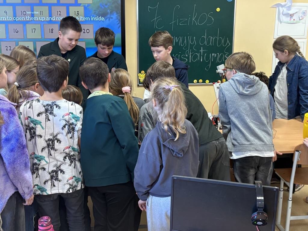 Balandžio 4 d. šeši 7c klasės mokiniai: Kamilė Deviatnikovaitė, Gediminas Gaidys, Augustė Kuldaitė, Gabrielius Misiūnas, Arian Plotnikov ir Dovydas Užlys – pristatė STEAM programos fizikos tiriamuosius darbus pradinių 3c, 4c ir 4b klasių mokiniams. Nors septintokai tik šiais mokslo metais pradėjo mokytis fizikos, jų noras pažinti gamtos reiškinius ir suprasti juos leido kiek plačiau, negu reikalauja ugdymo programos turinys, pažvelgti į šį dalyką.