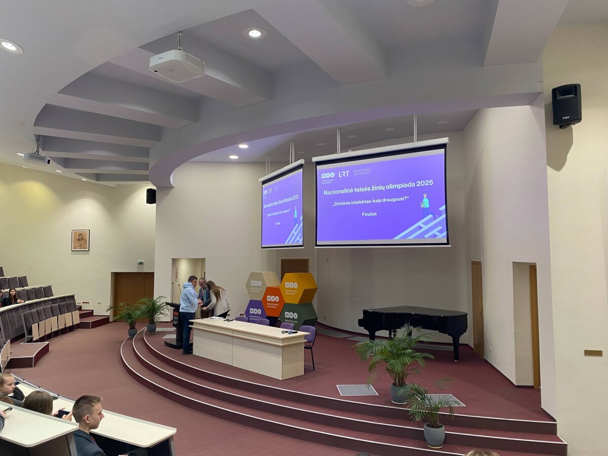 Sveikiname Adrianą Činčikaitę (6a), Miglę Nalivaikaitę (6a), Artiom Vilkoic (7a) ir Dariją Sivickytę (IIIa), kurie šiandien, 2025 m. gegužės 23 d., sėkmingai dalyvavo Nacionalinės teisės žinių olimpiados II etape Mykolo Romerio universitete! Šių metų olimpiados tema buvo itin aktuali: „Dirbtinis intelektas: kaip draugausi?“. Prieš olimpiadą mokiniai turėjo smagią galimybę išbandyti laimės ratą ir visi buvo apdovanoti. Olimpiados atidarymas prasidėjo įkvepiančia prof. dr. Mariaus Laurinaičio paskaita „Hello, AI! Ar tu jau žinai, ką man daryti su ateitimi?“. Olimpiados metu mokiniai atliko testus, kuriuose reikėjo ne tik puikių teisės žinių, bet ir sumanumo, išradingumo bei išmonės atsakinėjant į atvirus, situacinius klausimus. Vėliau jų laukė intriguojantis Temidy iššūkis: įveik su dirbtinio intelekto pagalba! Kol mokiniai varžėsi, mokytojams vyko naudingas seminaras teisinėmis temomis.