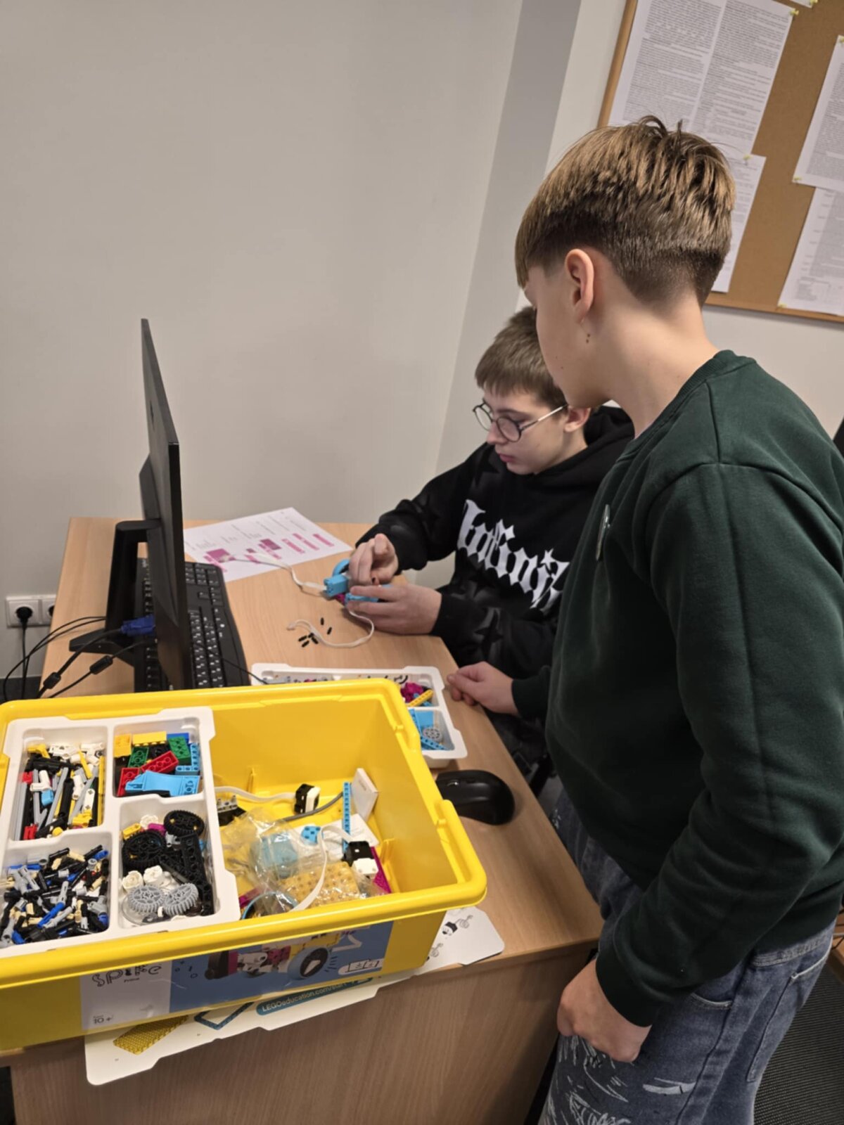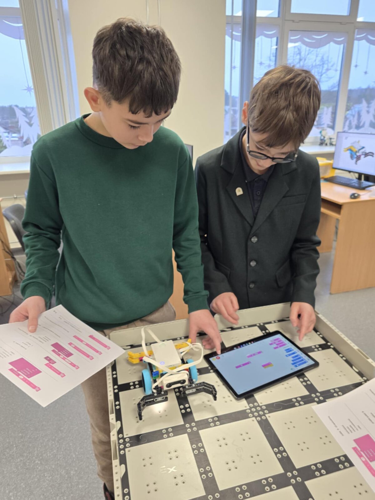 Mokiniai, dirbdami poromis, turėjo puikią galimybę susipažinti su robotikos iššūkiais: konstravimu (naudodami LEGO Spike Prime rinkinį, mokiniai konstravo robotus) ir programavimu (programavo robotus atlikti konkrečius uždavinius, tokius kaip judėjimas skirtingomis kryptimis, tikslo pasiekimas ir kliūčių įveikimas).