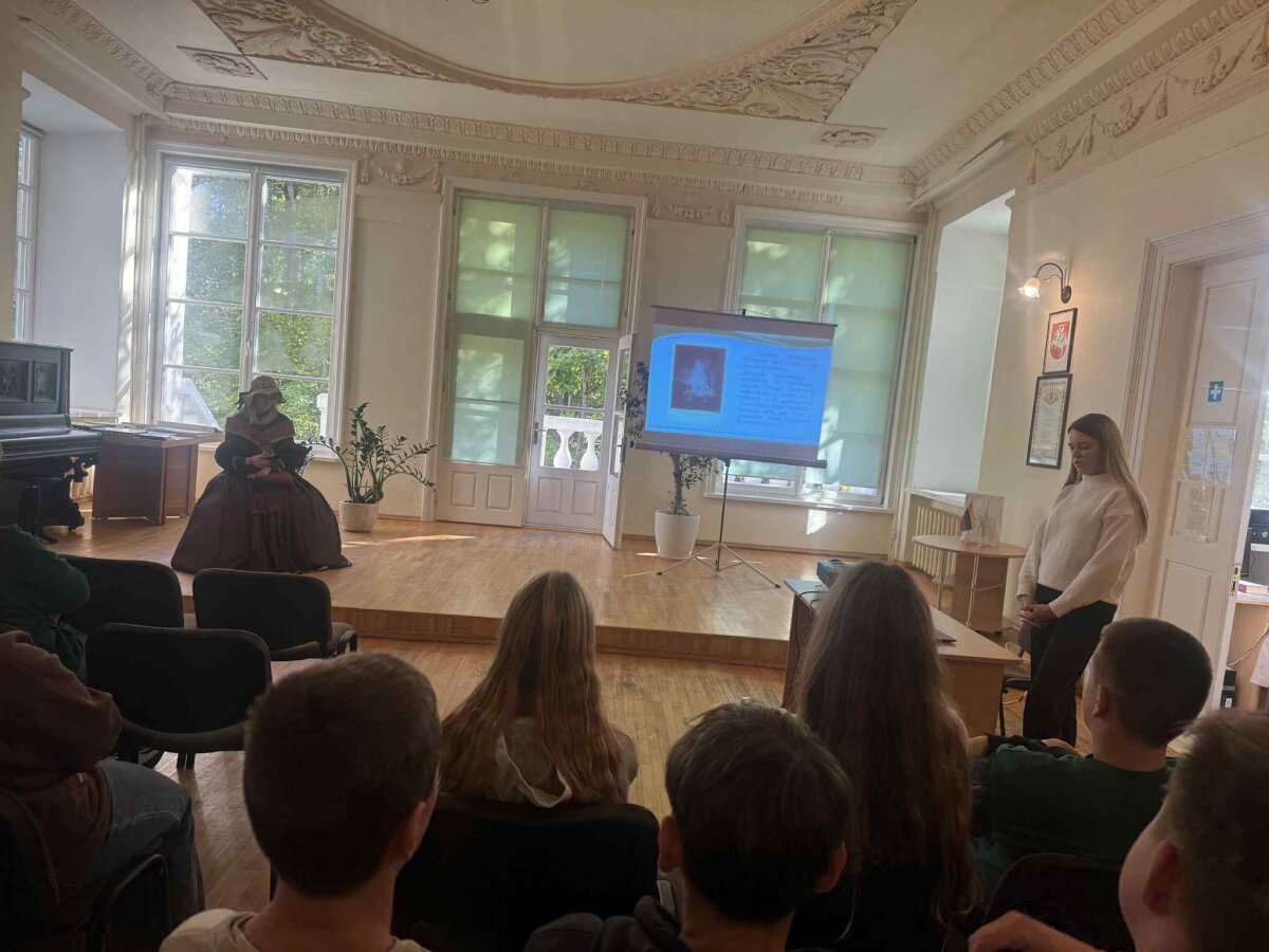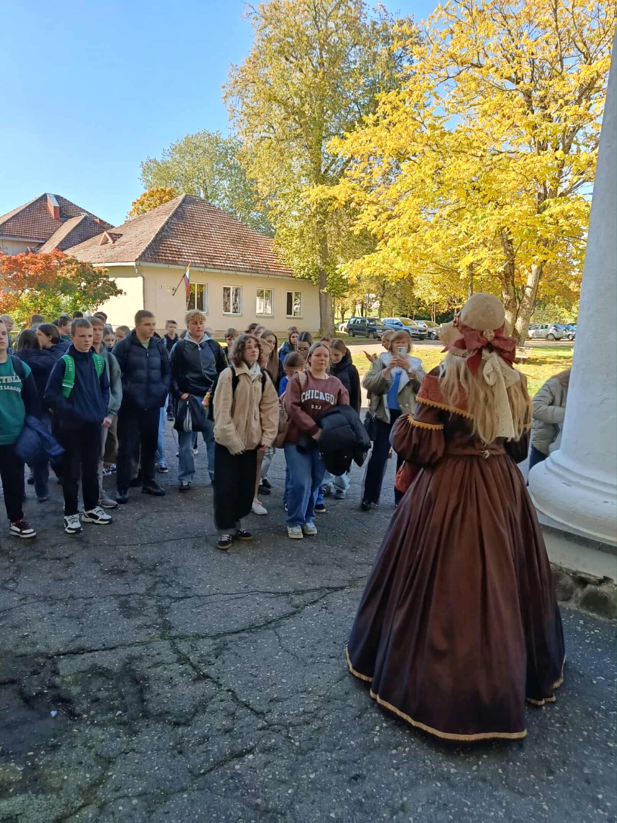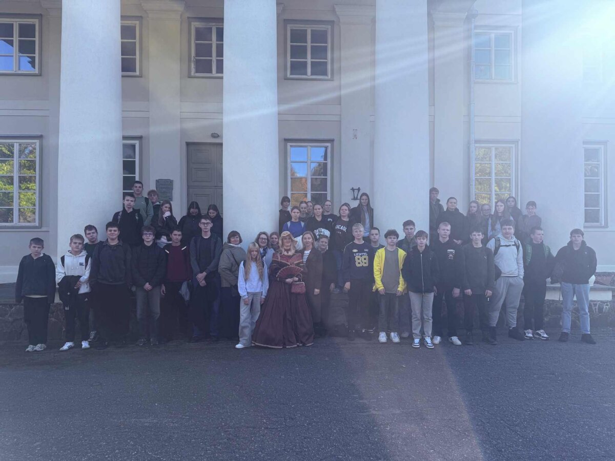 Spalio 8 d. visų aštuntų klasių mokiniai su mokytojomis vyko į Cirkliškio dvarą, kurį anksčiau valdė Lietuvos didysis kunigaikštis, o vėliau – grafai Mastovskiai. Tai vėlyvojo klasicizmo formų rūmai su 6 dorėniškųjų kolonų portiku pagrindiniame fasade. Mokiniai dalyvavo edukacinėje veikloje „Vaizdas pasakoja istoriją“, susipažino su Cirkliškio dvaro istorija, architektūra ir kultūriniu paveldu. Stebėdami dvaro pastatus, jų detales bei aplinką, jie aiškinosi, kaip vaizdai ir architektūriniai elementai gali perteikti praeities įvykius ir pasakoti istorijas. Buvo įdomu klausytis edukatorių – ponios Domicelės Mastovskienės (Sandros Petkevičienės), šio dvaro šeimininkės, ir Irmos Kirkutienės – įtaigaus pasakojimo apie dvaro istoriją, apžiūrėti išlikusius autentiškus statinius: ledainę – klasicizmo laikotarpio apskrito plano statinį su kūginiu stogu – ir kalvę su puskolonių portalu pagrindiniame fasade.