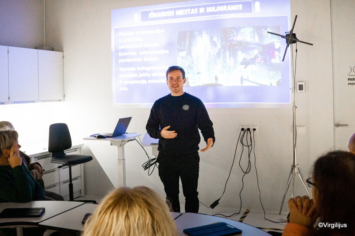 Didelio susidomėjimo sulaukė edukacinis užsiėmimas, kurį vedė metodininkas Mindaugas Vidutis išmanaus miesto laboratorijoje. Jo metu mokytojai kūrė išmanaus miesto sprendimus, juos piešė, o vėliau, naudojantis projektoriumi, piešiniai atgijo hologramomis. Ši įtraukianti veikla leido dar kartą įsitikinti, kaip kūrybiškumas dera su naujausiomis technologijomis.