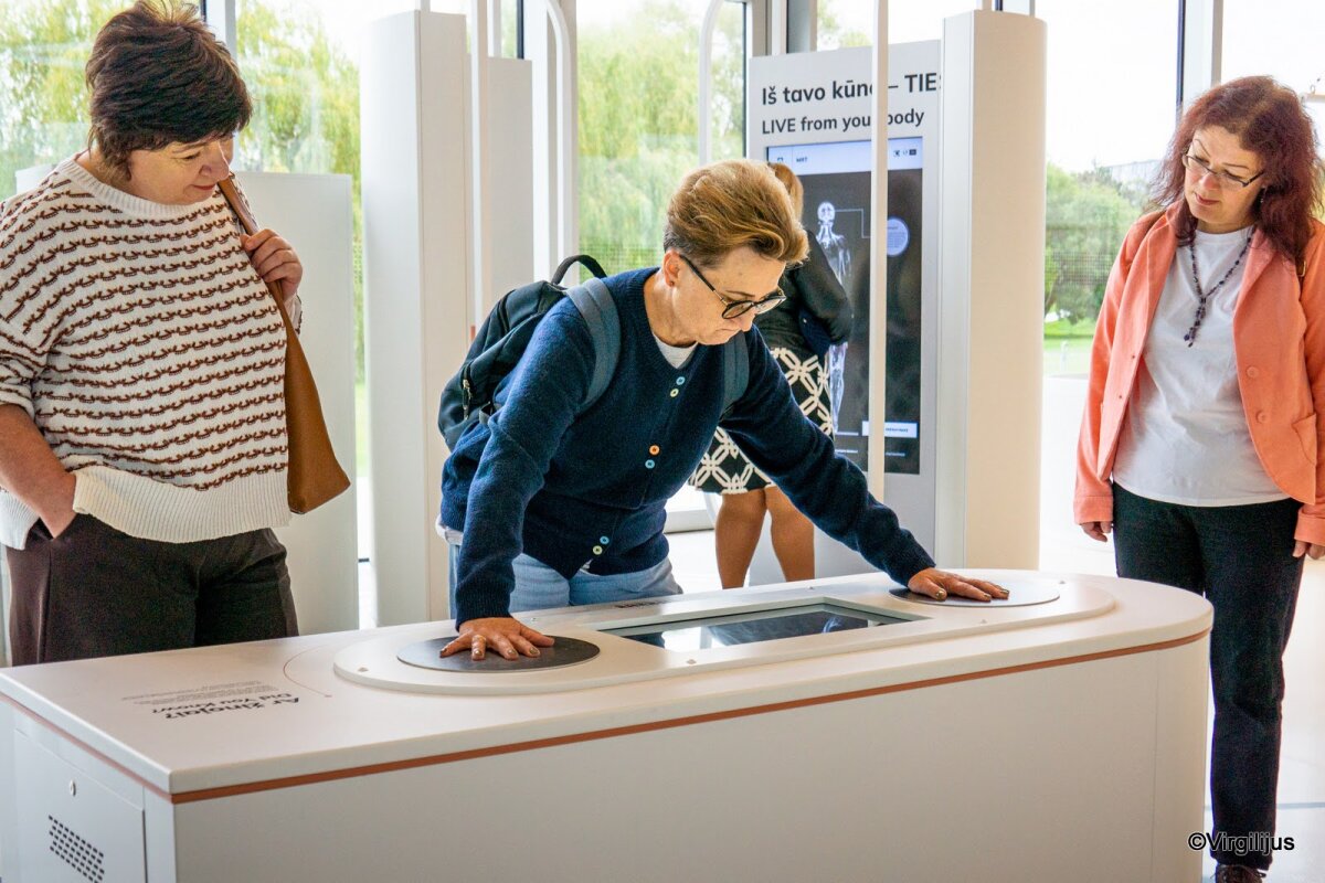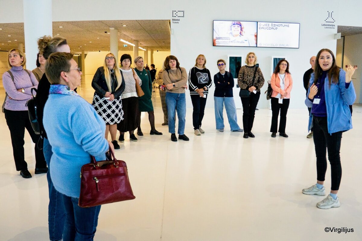 Atvykusius mokytojus pasitiko STEAM centro vadovė Agnietė Kielė. Ji supažindino su šiuolaikišku pastato išdėstymu, papasakojo apie ekspozicijas ir pakvietė mokytojus patiems išbandyti interaktyvius eksponatus.
