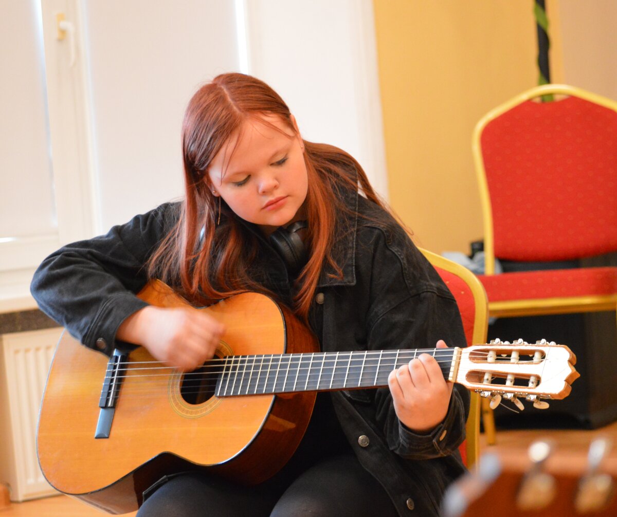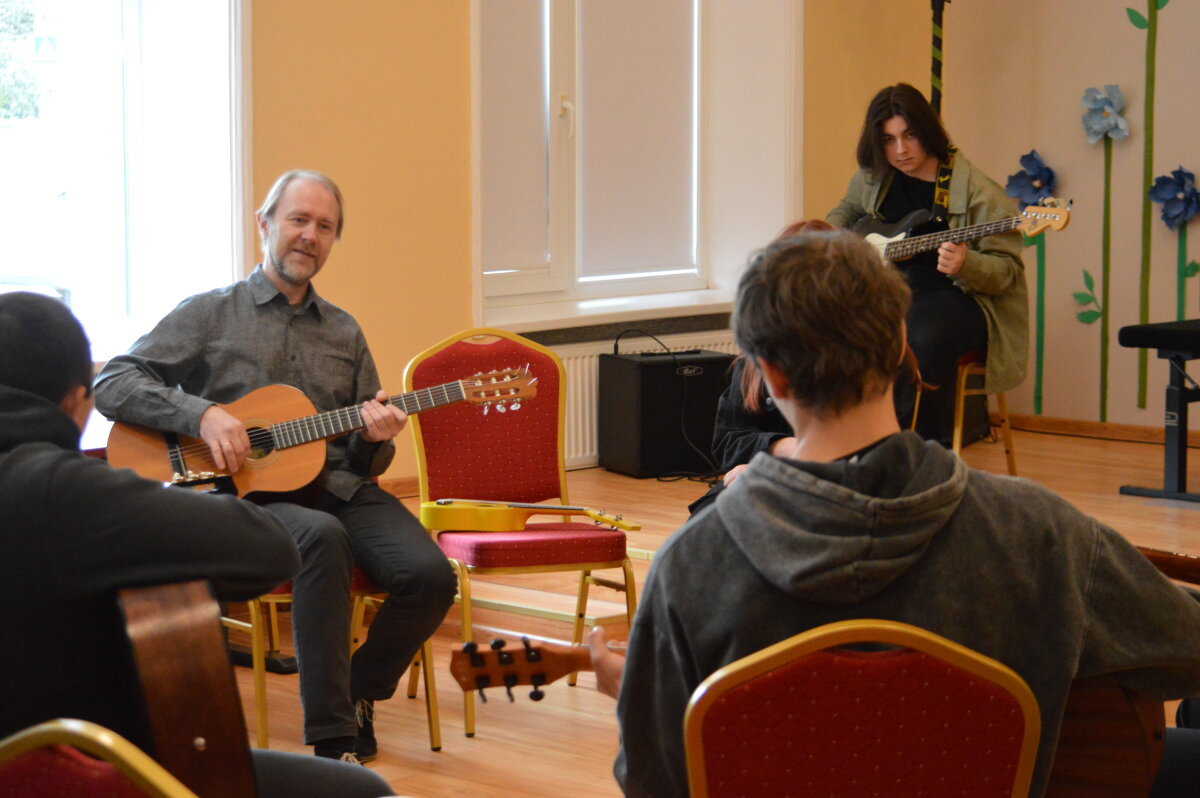 „Išvyka, edukacinis užsiėmimas man labai patiko. Mokytojas buvo malonus, kantrus ir labai gražiai mums pagrojo gitara. Įdomu buvo stebėti, kaip mokomasi groti, išgirsti naudingų patarimų norintiems tobulėti. Man, mokančiai dainuoti, dažnai koncertuojančiai, bet nemokančiai groti gitara, buvo labai įdomu klausytis, kaip viską aiškino ir demonstravo. Žaviuosi, kaip gitara dera pritarti dainavimui. Dainavimas gyvai pritariant sukuria ypatingą skambesį, atmosferą, leidžia dar geriau išreikšti emocijas ir sukurti šiltą, jautrų ryšį su klausytojais. Išvykos metu jaučiausi pakylėta, kupina gerų emocijų ir įkvėpimo. Norėčiau dažniau dalyvauti tokiuose užsiėmimuose, veiklose, nes tai galimybė patirti, išmokti kažką naujo. Tai skatina labiau lavinti dainavimo ir grojimo įgūdžius, geriau pažinti kitus.“