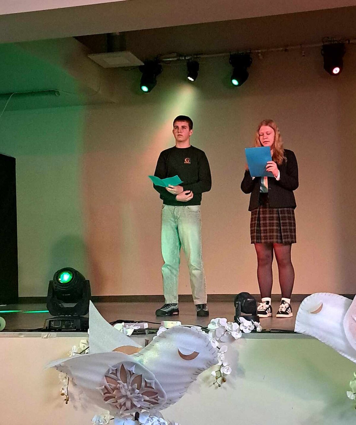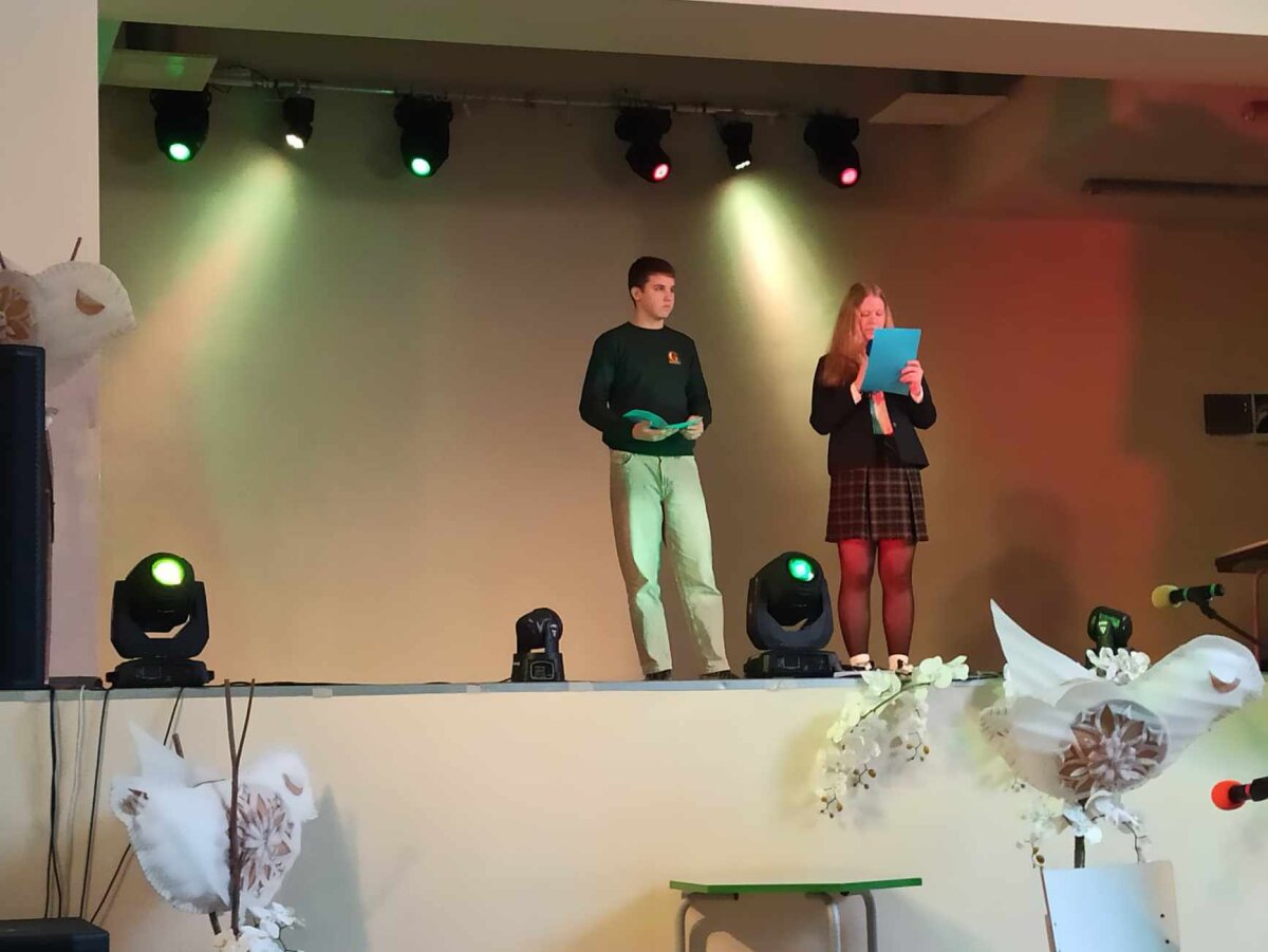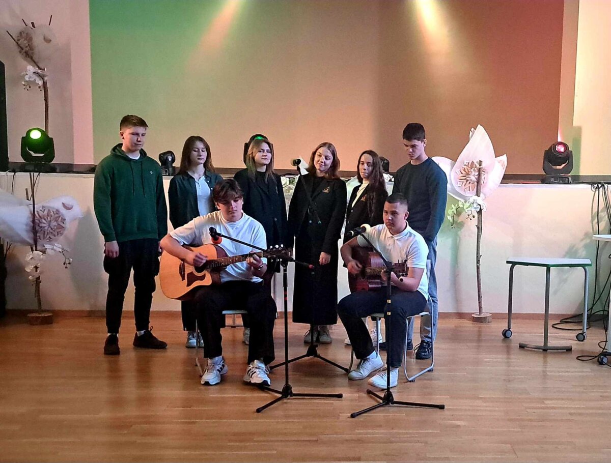 Tarp skaitomų tekstų puikiai įsiliejo muzikos garsai (dėkojame mokytojai Jolitai Budrytei-Abromavičienei ir jos vadovaujamo vokalinio-instrumentinio ansamblio dalyviams), šokio judesiai (ačiū mokytojai Agnei Paulavičienei ir jos vadovaujamo būrelio šokėjoms) – viskas gražiai susipynė į vieną visumą. Karinos ir Geilės atliekamos dainos dar labiau paryškino šio renginio idėją – klausytis reikia širdimi, tuomet gyventi bus visiems geriau.
