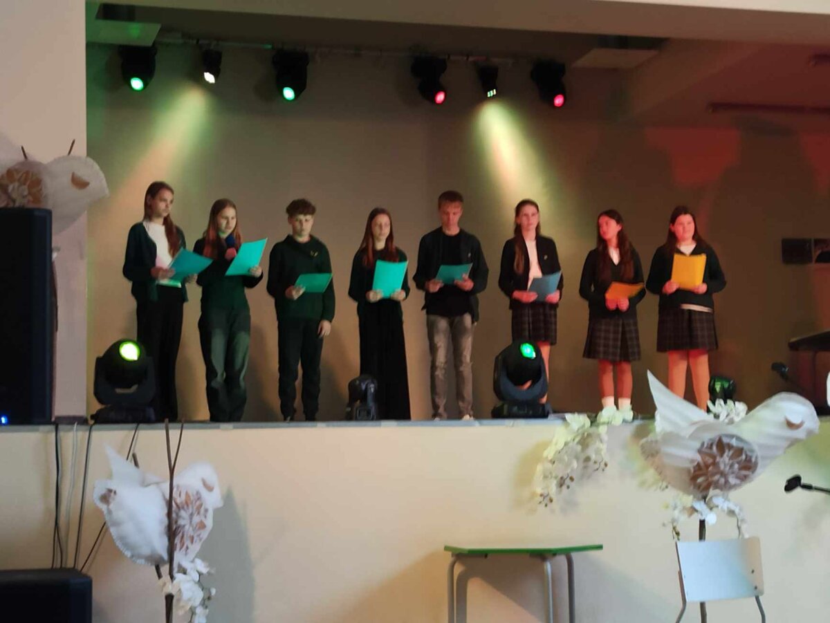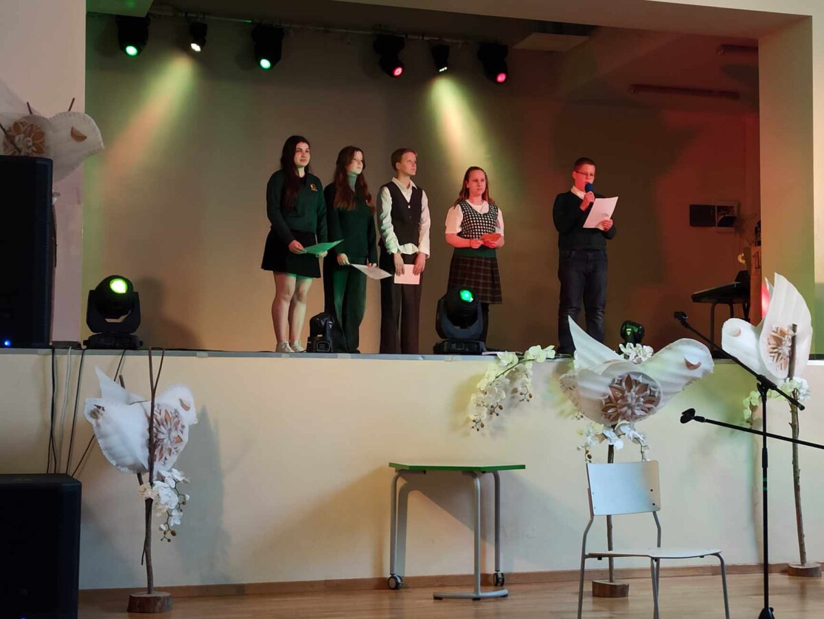 Literatūrologas Vytautas Kubilius rašė, kad greitai skaityti galima tik mokslinę literatūrą, o poeziją skaitome lėtai, į ją reikia įsiklausyti, grįžti ne kartą. Džiugu, kad šiame informacinių technologijų amžiuje yra ir aukštesniųjų klasių gimnazistų, kurie ne tik geba skaityti poeziją, bet ir ją kuria. Gera buvo klausytis gimnazijos I klasių mokinių: Radvilės, Gabijos R., Brigitos, Patricijos, Arūnės, Gerdos, Gabijos M., Enritos, taip pat II klasių kūrėjų: Ugnės, Karinos, Ramintos, Austėjos – skaitomų eilėraščių. Visus sužavėjo III klasių mokinių: Gusto, Martyno, Modesto, Akvilės, Deimantės – sukurta poetinė kompozicija.