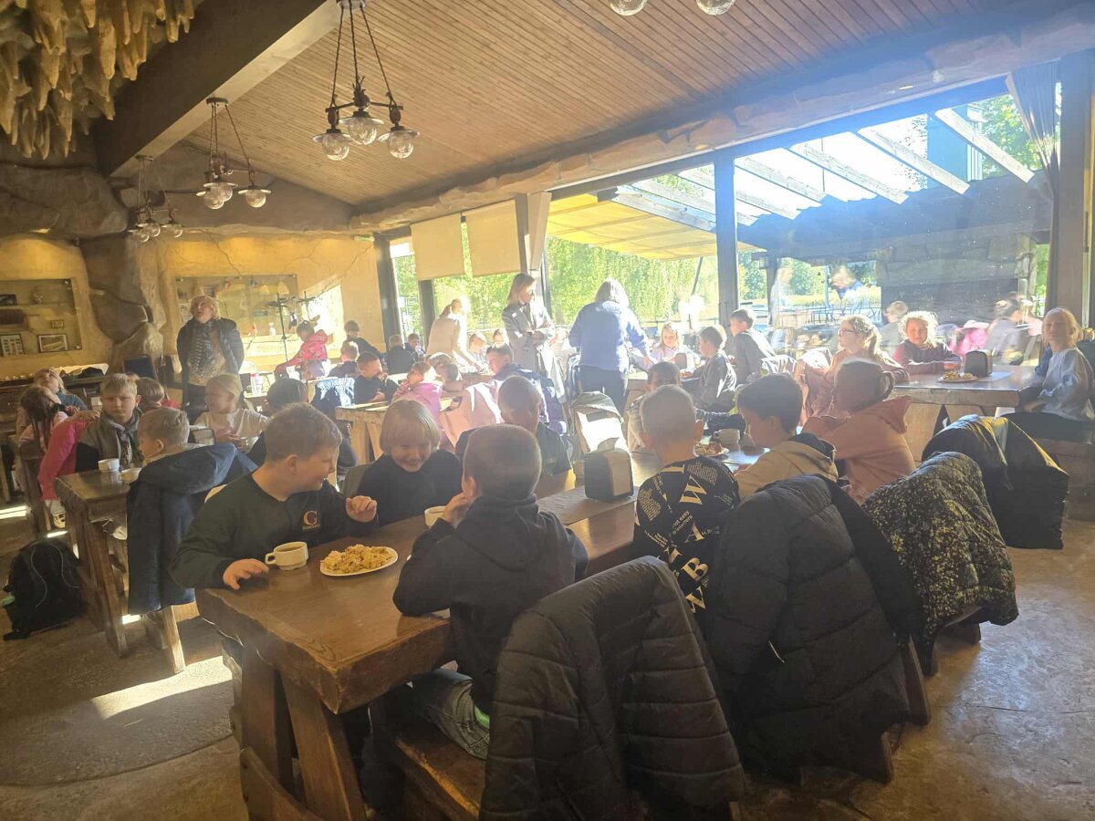 2a ir 3c klasių mokiniai dalyvavo edukacinėje programoje „Šakočio kelias iki mūsų stalo“. Mokiniai sužinojo šakočio atsiradimo istoriją, pamatė visą gaminimo procesą ir patys dalyvavo gamybos procese. Vėliau visi ragavo dviejų rūšių tradicinių skanėstų su kvapnia arbatėle. Puikus interjeras priminė uolą ir grąžino mus į akmens amžiaus laikus, nuo kurių ir prasidėjo šakočio istorija. Kepimo metu buvo rodomas filmukas, pasakojama apie šakočių kilmę, jų rūšis, senuosius ir dabartinius kepimo būdus.