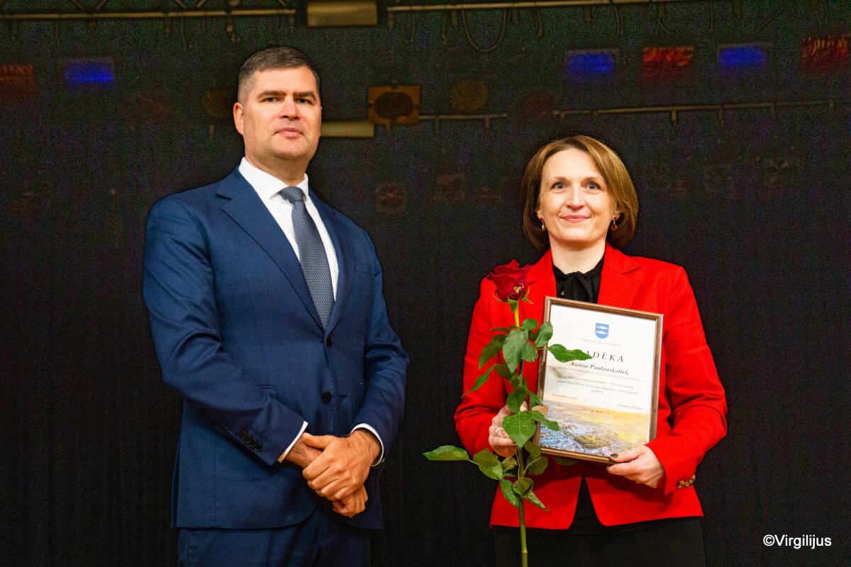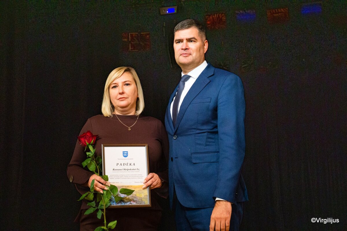 Ramunei Skripskaitei Li, istorijos mokytojai metodininkei, už kūrybišką ir profesionalią pedagoginę veiklą bei aktyvų dalyvavimą gimnazijos ir rajono švietimo bendruomenės veikloje.