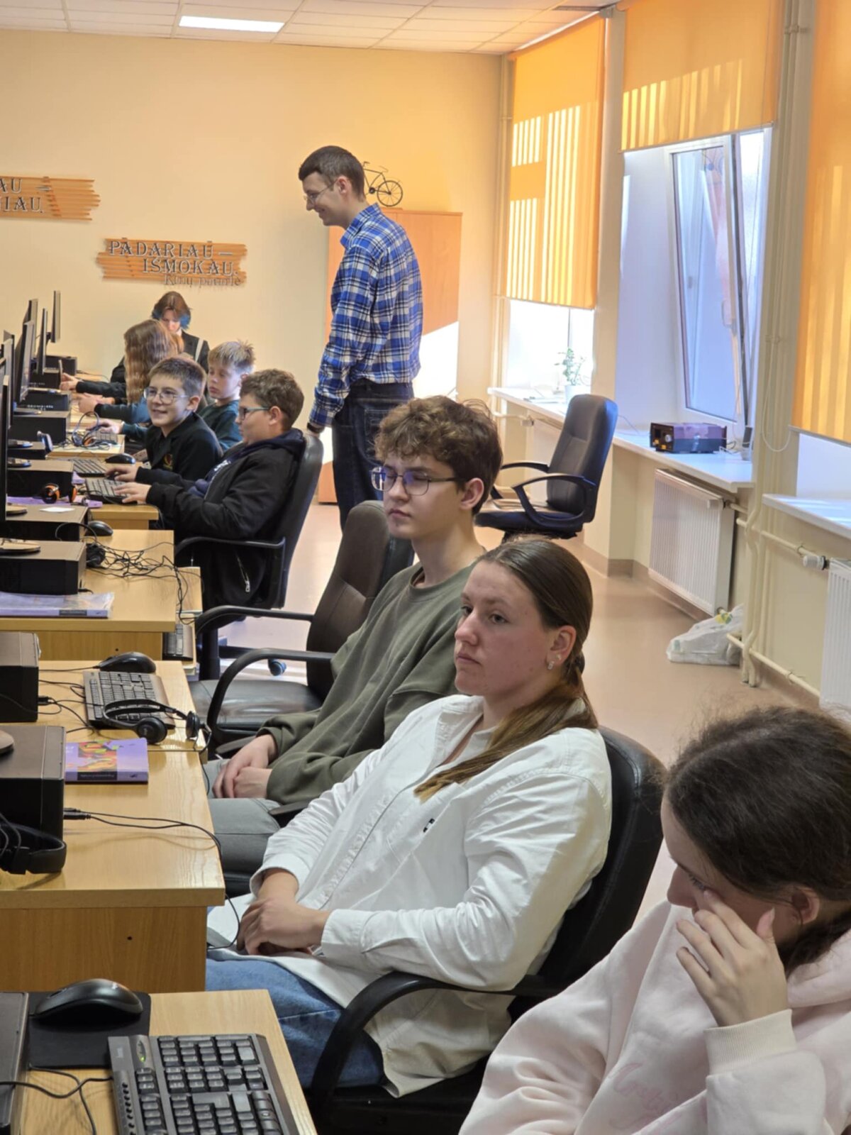 Gimnazijoje vykusi programavimo savaitė neapsiėjo be įžvalgių paskaitų („Nuo ko pradėti, jei noriu dirbti su technologijomis“ ir „Kaip atrodys technologijų ateitis 2030-aisiais“), organizuojamų „Telia Global Services Lithuania“ iniciatyva. Šių paskaitų dėka II–IV gimnazijos klasių mokinių dėmesys buvo sutelktas į ateitį – kaip technologijos keisis ir kokias galimybes jos atvers.