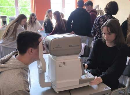 Pagal „Tūkstantmečio mokyklų“ projektą buvome pakviesti dalyvauti Švenčionėlių Karaliaus Mindaugo gimnazijos organizuotoje išvykoje į į Šiaulių STEAM centrą ir Vilniaus universiteto Šiaulių akademiją. Šiaulių STEAM centre mokiniai turėjo unikalią galimybę pasitelkti modernią įrangą ir atlikti įvairius regos tyrimus, pabūti optometrininkais. Jie mokėsi, kaip veikia akis, kokios yra dažniausios regėjimo problemos ir kaip jos koreguojamos. Tai buvo puiki proga ne tik praplėsti žinias apie žmogaus fiziologiją, bet ir praktiškai išbandyti, ar ši sritis jiems būtų įdomi ateityje. Patyrę specialistai dalijosi savo žiniomis ir patirtimi, atsakė į mokinių klausimus.