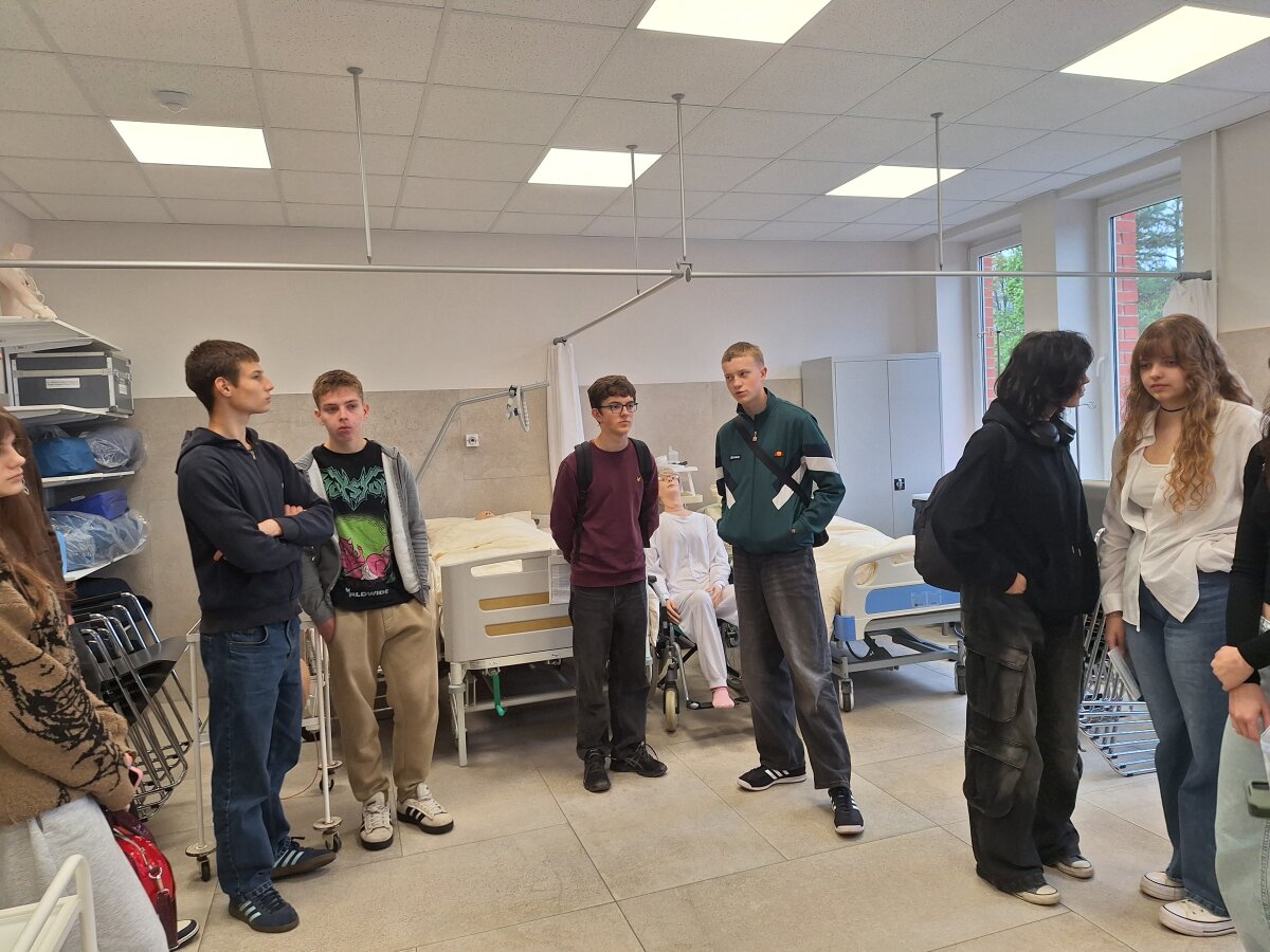 Gegužės 23 dieną I–III gimnazijos klasių mokiniai lankėsi Vilniaus kolegijos Sveikatos priežiūros fakultete. Gimnazistus pasitiko ir į laboratorijas lydėjo fakulteto ryšių su visuomene atstovė Diana Žėkienė, kuri supažindino su studijų programomis ir bendromis fakulteto veiklomis. Pirmiausia mokiniai susitiko su Medicinos technologijų ir dietetikos katedros vedėja dr. Ingrida Punkutiene. Dėstytoja pristatė šios katedros siūlomas studijų programas, papasakojo apie jų aktualumą, praktikos galimybes bei pirmame kurse dėstomus dalykus. Vėliau gimnazistai apsilankė Grožio terapijos katedroje, kur juos pasitiko katedros vedėja Vaiva Suchodolska. Ji aprodė laboratorijas bei išsamiai pristatė higieninės ir dekoratyvinės kosmetologijos studijų programą, pabrėžė jos populiarumą ir praktinio mokymo svarbą. Daug vertingos praktinės patirties mokiniai įgijo susitikę su Slaugos katedros vedėja Jurgita Stankūniene. Ji supažindino su naujausiomis kūdikių ir suaugusiųjų slaugos tendencijomis bei akcentavo greitos ir kokybiškos pirmosios pagalbos svarbą. Mokiniai turėjo galimybę patys išbandyti keletą medicininių aparatų ir susipažinti su jų veikimo principais. Vizitas buvo naudingas ir informatyvus – mokiniai ne tik praplėtė savo žinias apie sveikatos priežiūros sritį, bet ir praktiškai prisilietė prie šios profesijos subtilybių.