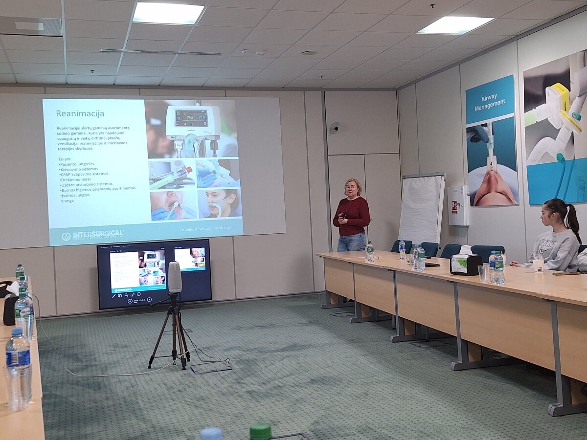 Sausio 30 dieną IIa gimnazijos klasės mokiniai lankėsi UAB „Intersurgical“. Gimnazistus pasitiko gamybos personalo vadovė Ramunė Bindokienė, kuri supažindino su įmonės įkūrimo istorija, veikla Lietuvoje ir kitose šalyse.